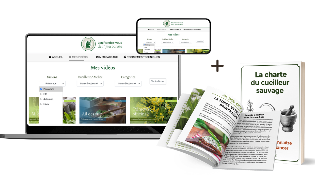 En cliquant sur le lien ci-dessus, vous souscrivez en 1-CLIC au programme "Les Rendez-vous de l'Herboriste" pour 175€ + Le guide de l'apprenti cueilleur offert.